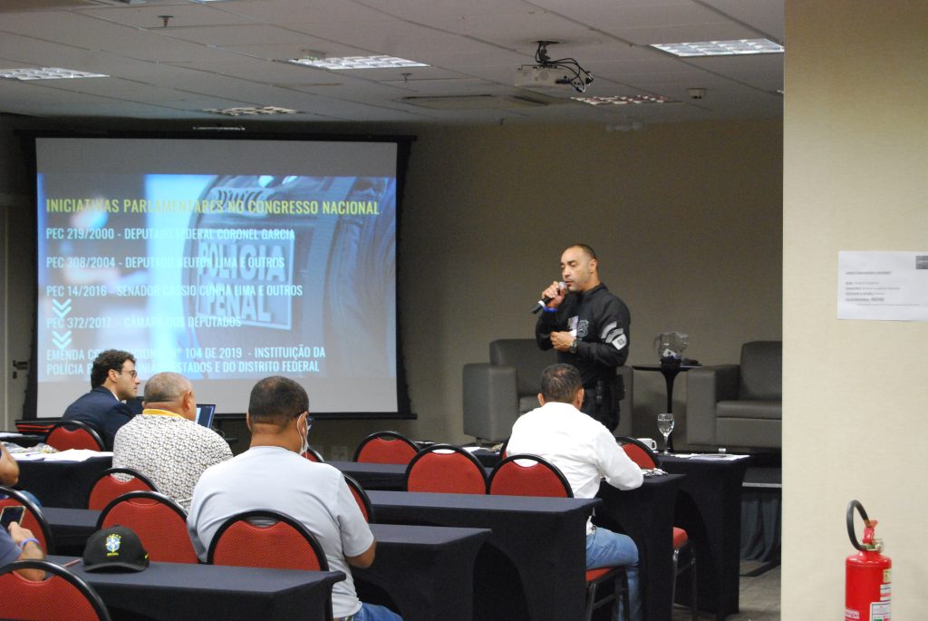 Brasília, 20 de Abril de 2023. No dia 16 de março de 2023, na mesa 3 com tema: Experiências e conhecimentos sobre a Polícia Judicial, suas atribuições e competências, estavam presentes os seguintes palestrantes: Mário Augusto Figueiredo de Lacerda Guerreiro e Paulo Rogério da Silva (Presidente do Sindicato dos Policiais Penais do Distrito Federal).