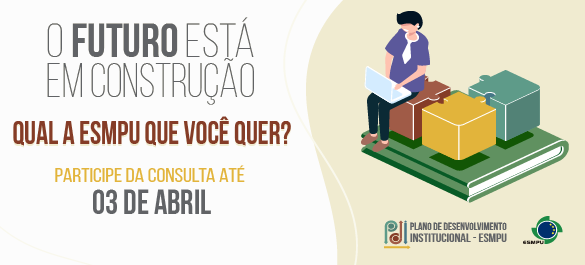 O questionário estará disponível até 3 de abril e as respostas irão subsidiar a definição dos objetivos e metas institucionais para os próximos cinco anos Publicado: 28/03/2019 13h50 Chegou a hora de membros(as) e servidores(as) do MPU darem sua contribuição para o Plano de Desenvolvimento Institucional (PDI) 2020-2024 da Escola Superior do Ministério Público da União