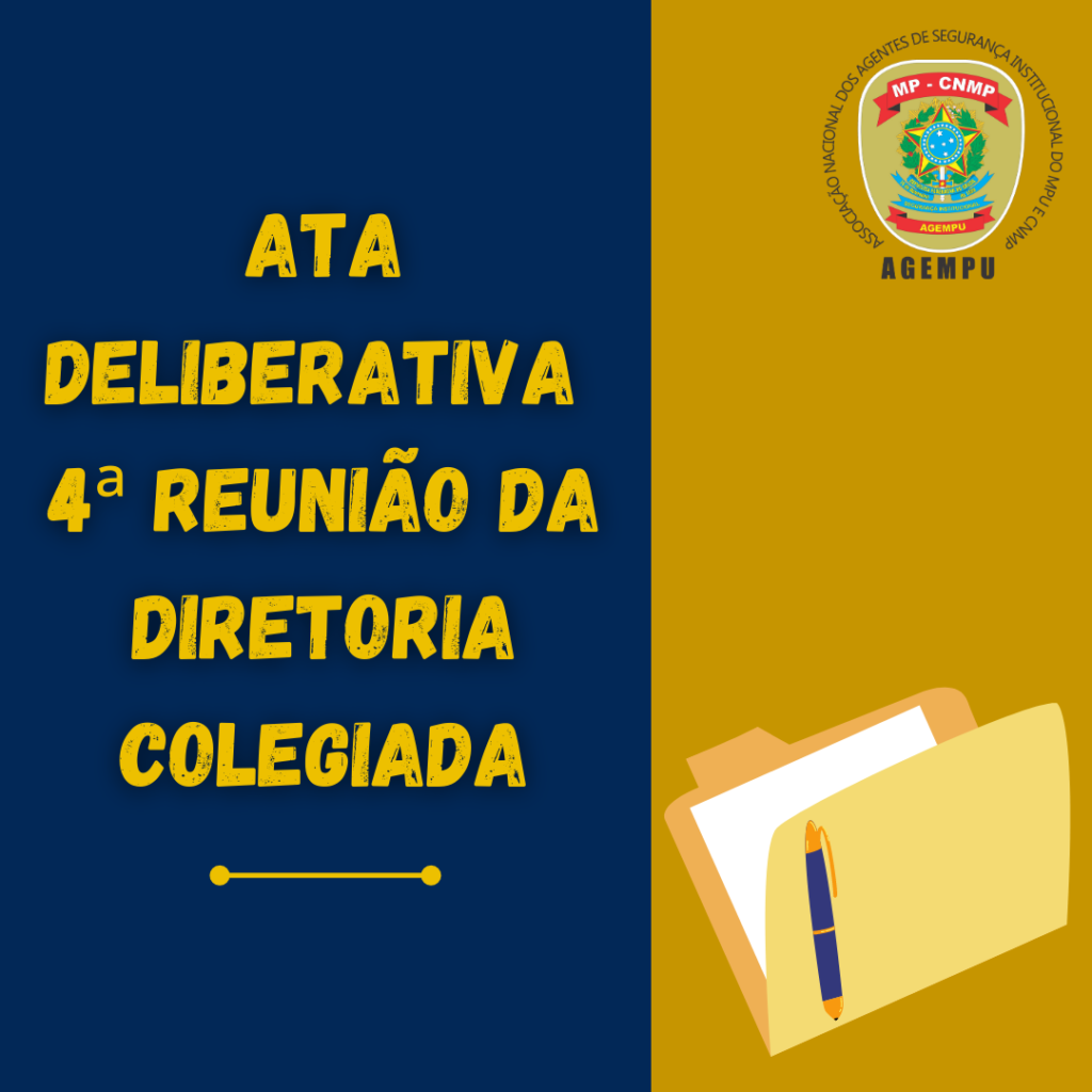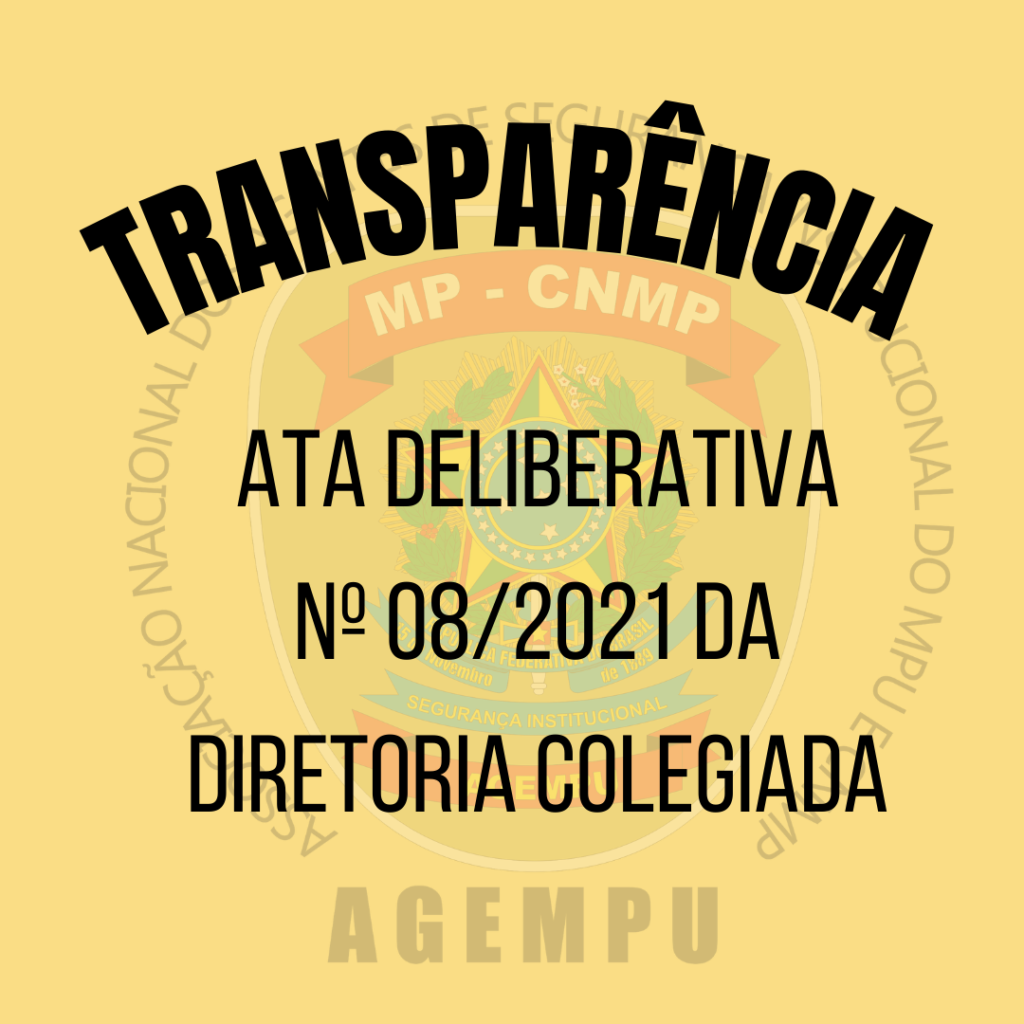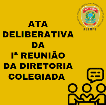 Transparência: Divulgação da Ata deliberativa da 1ª reunião da AGEMPU. No dia 20 de janeiro de 2021, foi realizada a primeira reunião da Diretoria Colegiada da AGEMPU neste ano. Em que debateu a data do protocolo do pedido de alteração nomenclatura para Policia do MP e discussão sobre TAF teste de avaliação física. Abaixo Ata