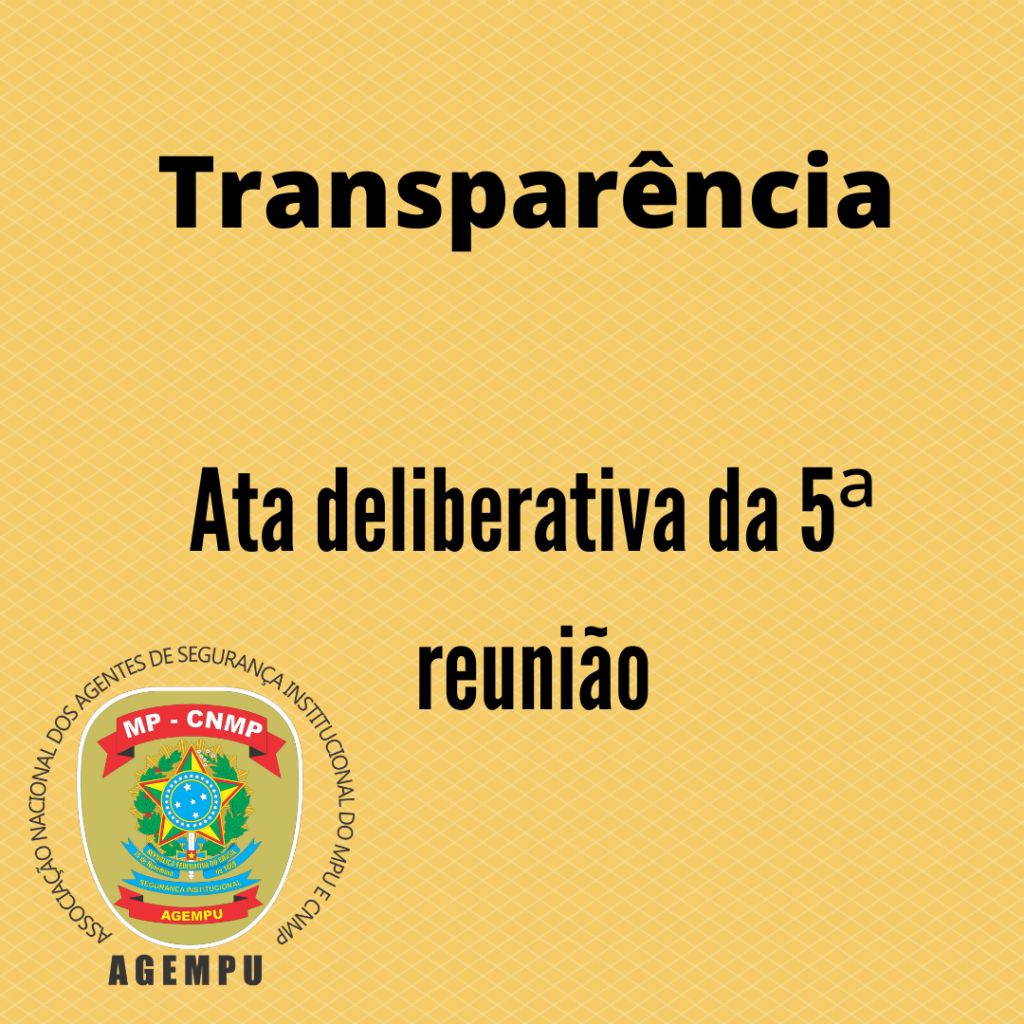 Brasília, 16 de março de 2021 Transparência: Divulgação da Ata deliberativa da 5ª reunião da AGEMPU. No dia 10 de março de 2021, foi realizada a quinta reunião da Diretoria Colegiada da AGEMPU neste ano, em que debateu sobre: Informes, Morte do agente de segurança do grupo de risco, GT e elaboração do Memorial Polícia
