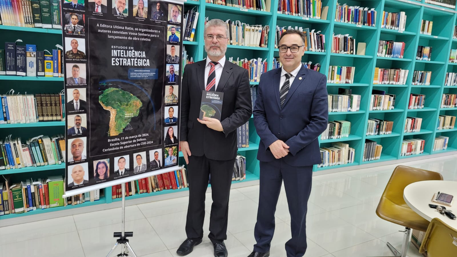 A cerimônia de Lançamento do Livro Estudos em Inteligência Estratégica na Escola Superior de Defesa, no auditório Professor Gustavo Heck. Sob a organização dos professores Cintiene Sanders, Ivan Carlos e Luciano Loiola. Publicação recentíssima, desse ano de 2024, da Editora Ultima Ratio.