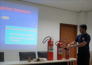No evento o servidor, que também possui cursos em técnicas de segurança institucional pela Associação Nacional dos Policiais Rodoviários Federais e inteligência em segurança pela PGR, abordou a diferença entre fogo e incêndio, efeitos provocados pelo calor, triângulo de fogo, formas de propagação do fogo, combate ao princípio e métodos de extinção de incêndio, além de orientar em que situação deve ser usado cada tipo de extintor. Após o enceramento da palestra, todos participaram do exercício de simulação de abandono do prédio.