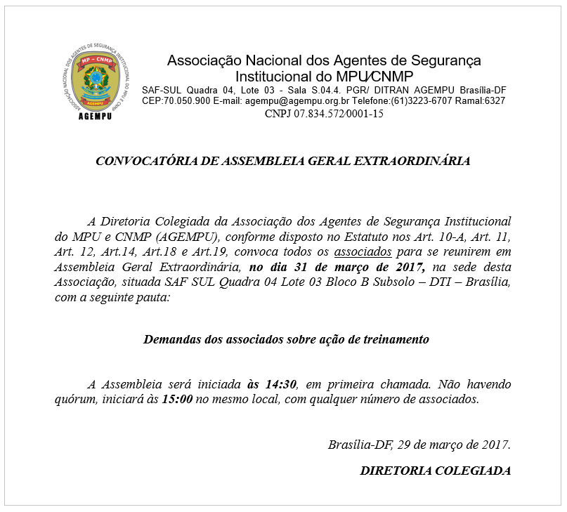 CONVOCATÓRIA DE ASSEMBLEIA GERAL EXTRAORDINÁRIA