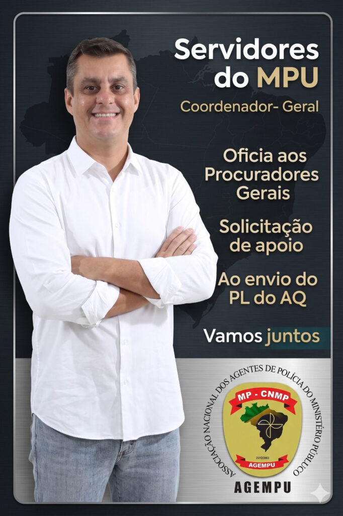 Coordenador-Geral da AGEMPU – Raul Loureiro, oficiou aos Procuradores-Gerais dos ramos do MPU, solicitando apoio ao envio do PL do AQ.