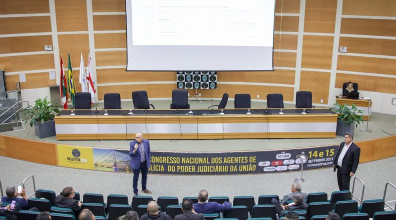 O período da tarde do último dia de II Congresso Nacional dos Agentes de Polícia do Poder Judiciário da União em Florianópolis (SC) foi iniciado com a palestra sobre a desoneração da Segurança Pública com a atuação da Polícia Judicial nos Órgãos do Poder Judiciário.