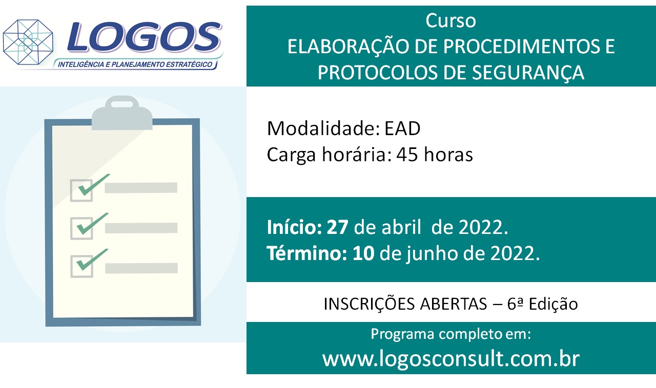 A elaboração de procedimentos e de protocolos de Segurança é fundamental do planejamento operacional para a atividade de Segurança, constituindo-se em processos que expressam o “como fazer” de políticas, planos, diretrizes e normas expedidas nas organizações. Este curso apresenta a concepção contemporânea de Segurança Institucional e Segurança Empresarial; a importância da integração entre os sistemas que integram a segurança de áreas e instalações e a operacionalização de procedimentos padrão. Aborda a estrutura e os componentes de um procedimento e protocolo de segurança, as etapas de implementação e os aspectos de conformidade de um procedimento padrão, bem como os requisitos de qualidade. No decorrer do curso o participante realiza exercícios empregando modelos de documentos apresentados e aprende a elaborar um procedimento padrão e um protocolo de Segurança.