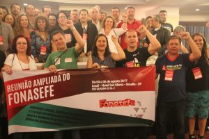 Os cerca de 300 participantes da Reunião Ampliada do Fonasefe, que ocorreu entre os dias 4 e 6 de agosto, em Brasília, aprovaram um calendário de lutas e mobilizações para o enfrentamento das reformas e iniciativas parlamentares que retiram direitos dos servidores públicos e dos trabalhadores brasileiros. Dentre as ações previstas, está o indicativo de greve geral de 24 ou 48 horas para o mês de setembro.