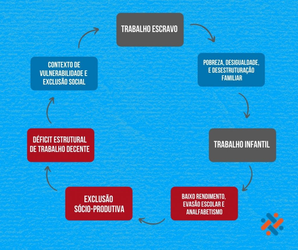 Jovens em contextos de vulnerabilidade como estes desde a infância, podem ter poucas oportunidades de escolha e desenvolvimento; além, é claro, daqueles que crescem envolvidos em relações de exploração e acabam por naturalizá-la. Tudo isso aumenta a possibilidade de que uma criança exposta ao trabalho infantil hoje, se torne um adulto em situação análoga a de escravo no futuro.