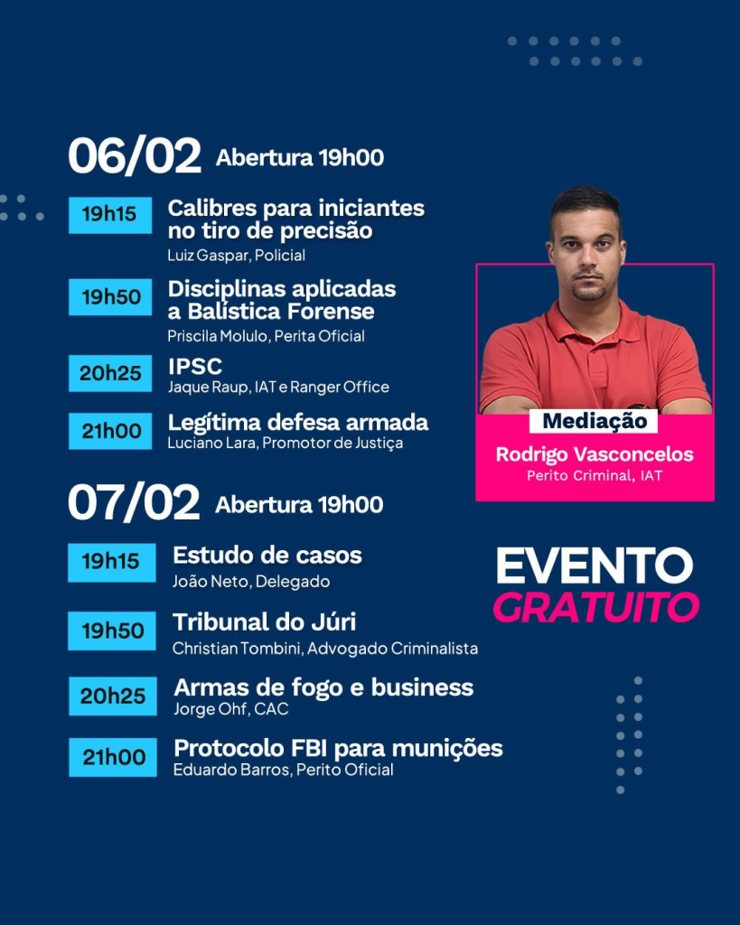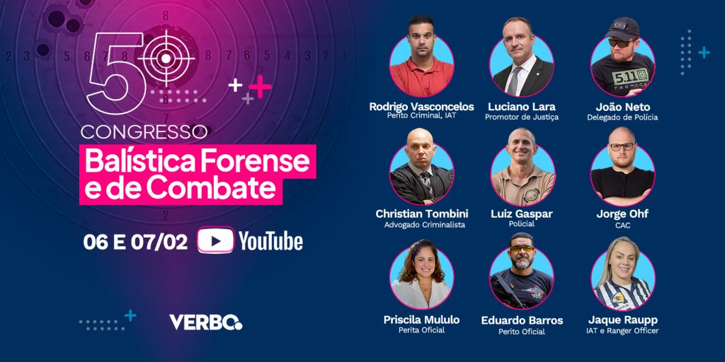 A VERBO está organizado o 5º Congresso de Balística Forense e de Combate – Online – Gratuito. Será nos dias 06 e 07 de Fevereiro, às 19h, e você é nosso convidado especial. SAVE THE DATE!